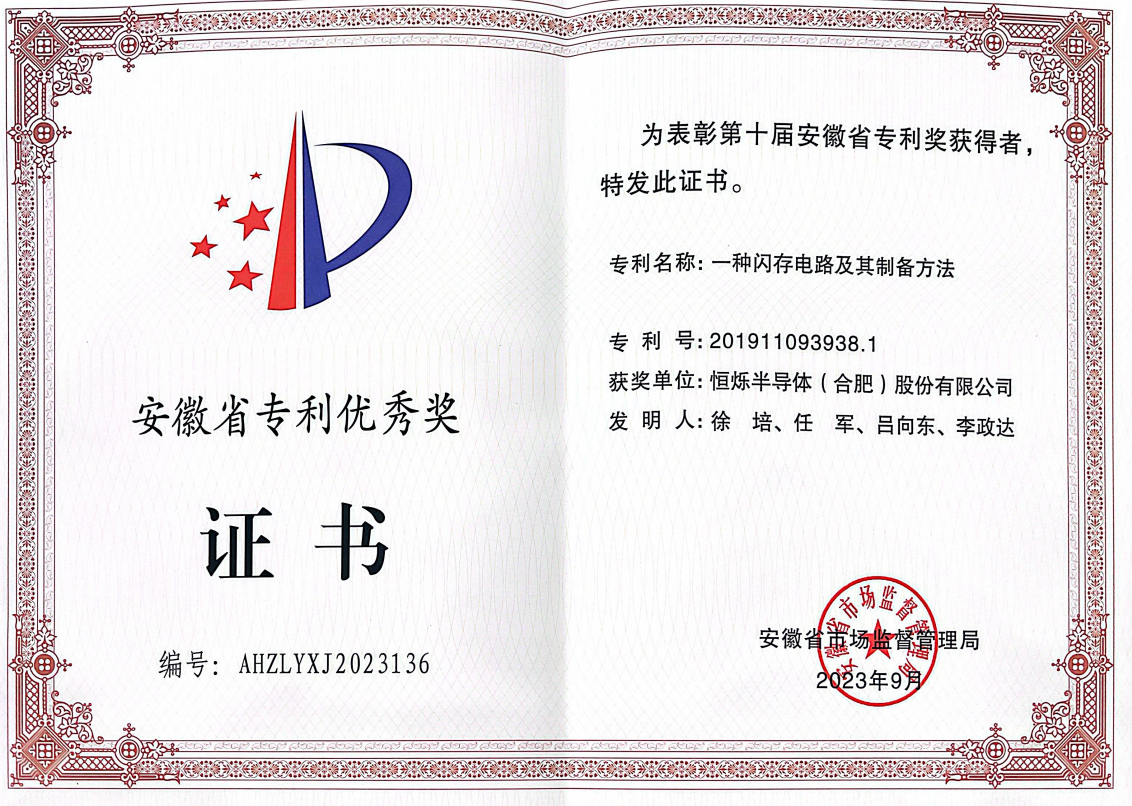 • 2023年第十屆安徽省優(yōu)秀專利獎-一種閃存電路及其制備方法